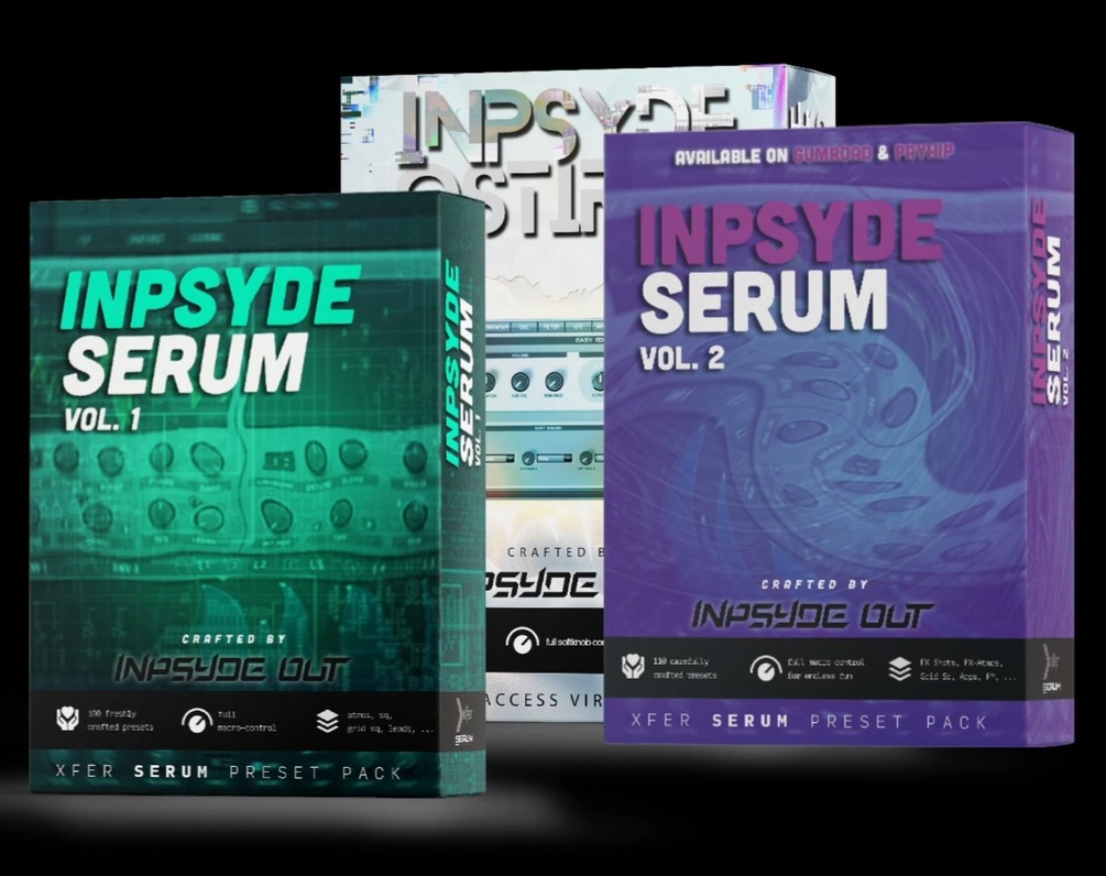 Here is your ultimate Inpsyde Out preset synthesizer bundle including “Inpsyde Serum Vol. 1 & Vol. 2 & Inpsyde Ostirus Vol. 1”!